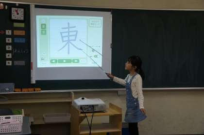 漢字の学習です。漢字の成り立ちや気付いたことなど発表しています。