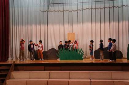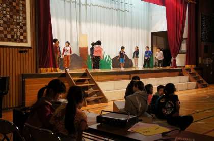 劇の練習です。効果音に合わせて動きも出てきました。