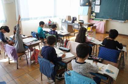 「じどう車くらべ」大事な言葉や文をノートに書いています。