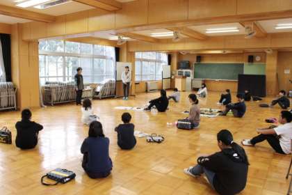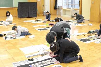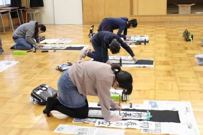 地域連携室にて、小野先生による書き初め指導です。