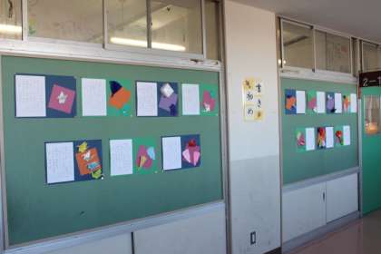 本日より30日(木)まで展示しています。1,2年と5,6年は各教室前廊下です。3,4年は図書室前廊下です。