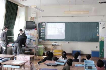 読み聞かせの後、クイズもありました。中学部1年生は次年度(読み手)に向けて、聞き手として参加しました。この後、小学部児童は、読み聞かせをしてくれた中学生にお礼の手紙を書きます。