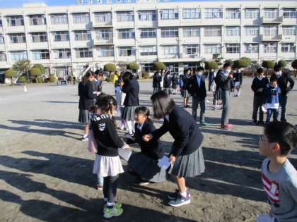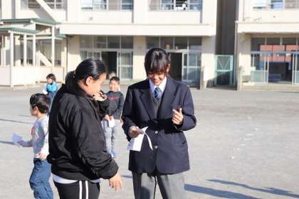 「増えていく、ぼく・わたし」を実施。自由に歩き、誰かに声をかけ、名前を教え合います。