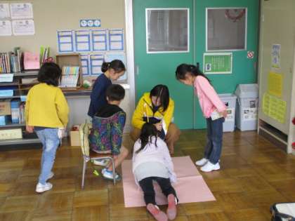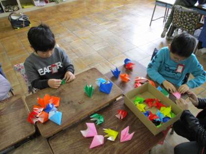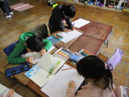 「あたらしい 1ねんせいを しょうたいしよう」保育園との交流に向けて準備を進めています。