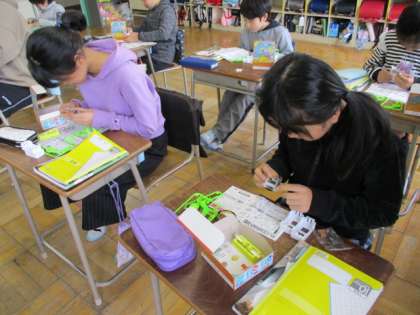 「電磁石のはたらき」4年生までの学習を復習した後、教具の部品を確認しました。