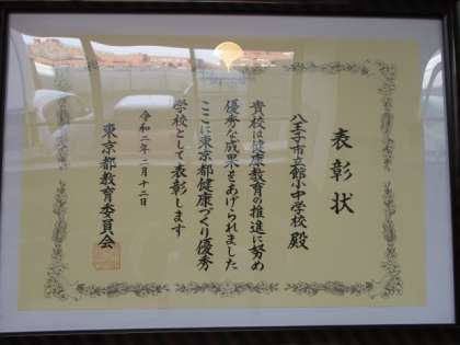 東京都教育委員会より「健康づくり優秀学校」として表彰されました。