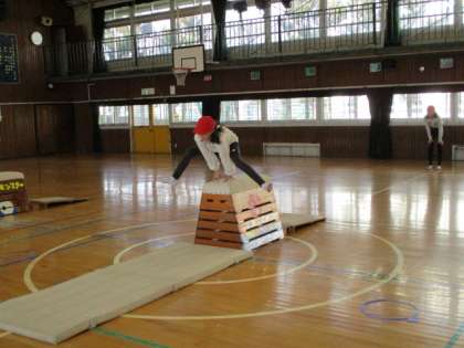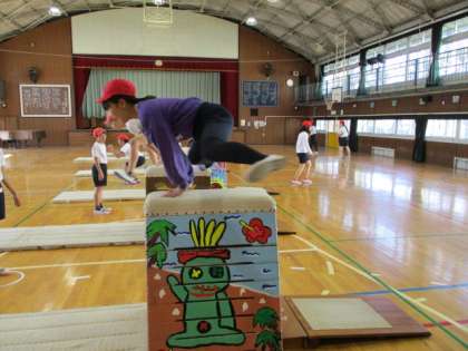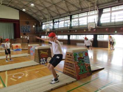 「跳び箱運動」友達にアドバイスをしていました。