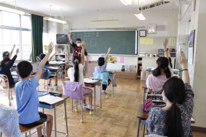 4年「国語」(花を見つける手がかり)、5年図工(課題の返却)、6年理科「ものが燃えるしくみ)全員が挙手しています。