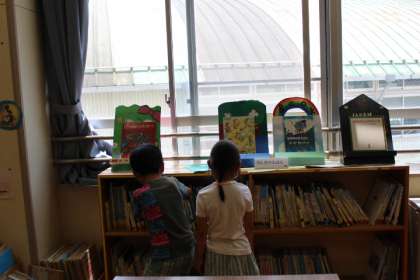 あさがおにお水をあげました。4校時は図書室で本を読みました。