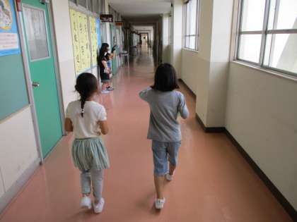 がっこうたんけんをしよう(1年生を案内して、校長室前で)