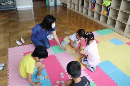 「いくつといくつ」9づくりゲームをしました。2枚のカードをめくって9にします。
