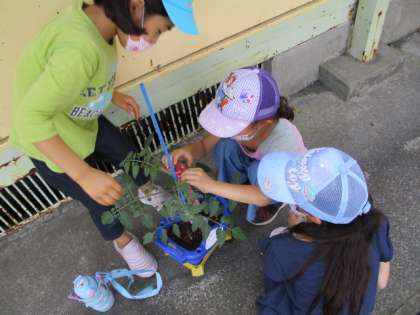 トマトのお世話をしています。