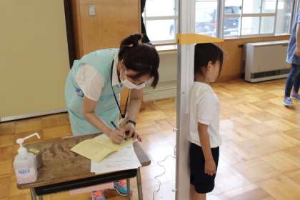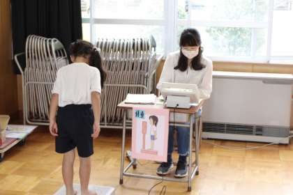 身長、体重を計測中