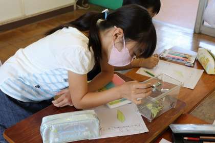 「チョウを育てよう」(さなぎを観察しています)