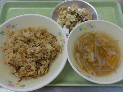 本日の献立:ししじゅうし、ゴーヤチャンプル、くずきりスープ