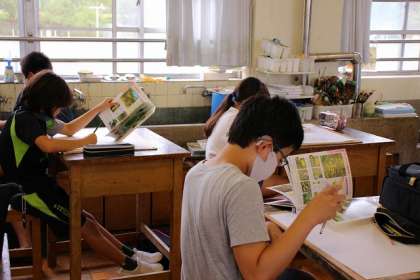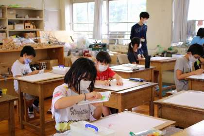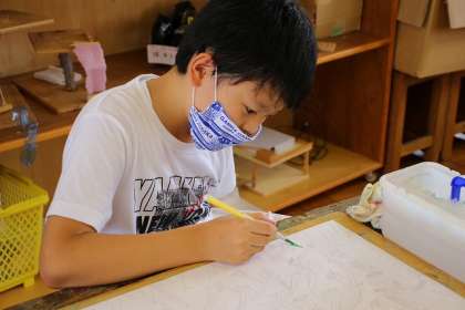 「アンリ的ジャングルに住む原住民」ジャングルの絵を描いています。