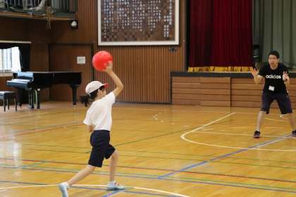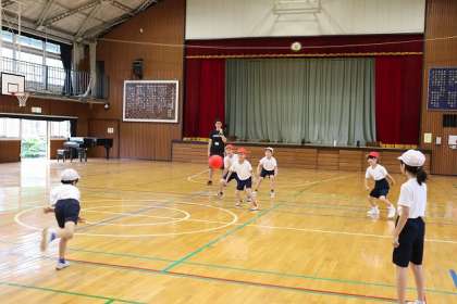 ボール運動(投げる・取る練習をした後、ゲームをしました)