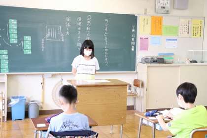 「町じまん」をすいせんしよう。発表です。しっかりと聞いてメモします。