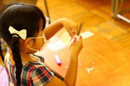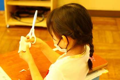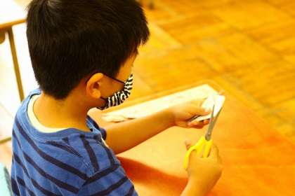 子供たちでアサガオの折り紙を作ります。