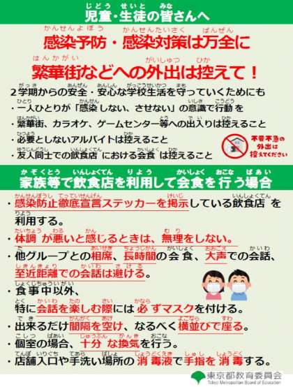 このことについて、当ホームページ「学校配布文書」の「学校だより」のところに、東京都教育委員会からのお知らせ資料を掲載しました。