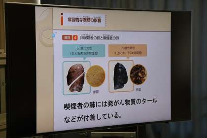パソコン室で「生活習慣病」の学習(喫煙の害について)