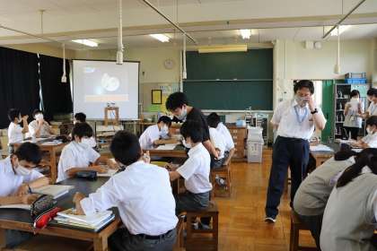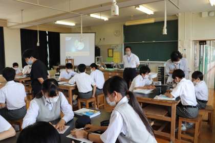 中学部の副校長先生による授業「地層や岩石のでき方を知ろう」です。