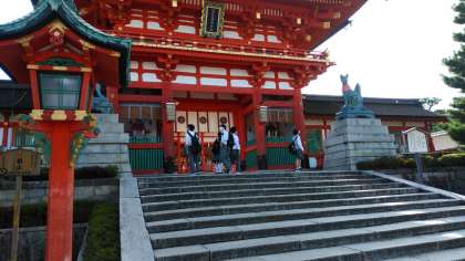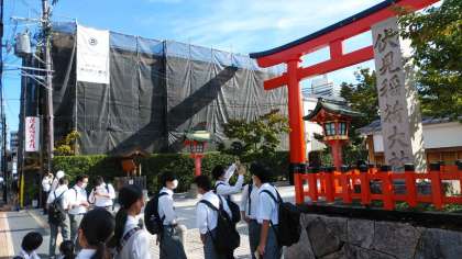 伏見稲荷大社に到着した班。このあと千本鳥居を見学するのでしょうか?