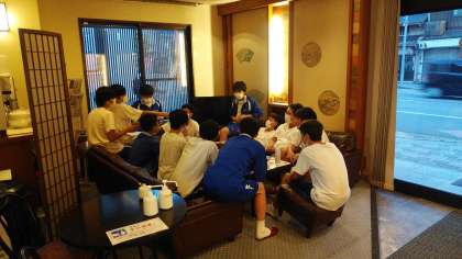 お風呂の後、男子はレクリエーションの打ち合わせ。みんな元気に一日過ごせました!
