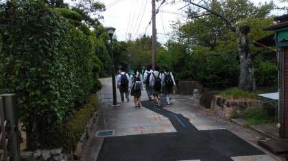 タクシー班行動。ドライバーさんの説明で宇治平等院の見学です。