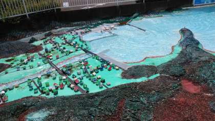 津波の見学?時間がくると恐ろしい津波が発生する模型を見学しました。