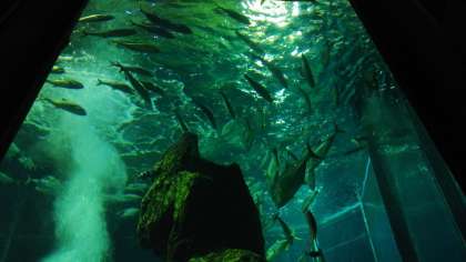 夜の水族館(恩方二小の五年生と一緒に水族館を見学しました)
