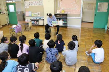 1・2年(算数少人数の先生)、3・4年(図工の先生)、5・6年(中学部の副校長先生)による本の紹介がありました。ありがとうございました。