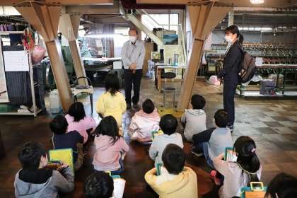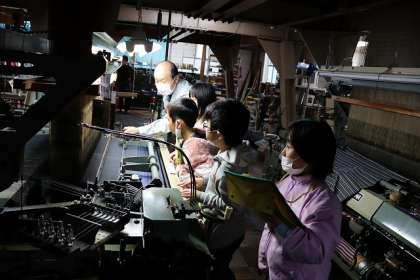 最初の目的地「池田織物工場」です。とても丁寧に親切に教えていただきました。