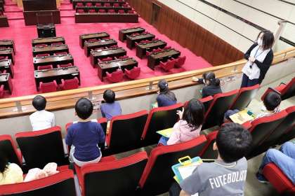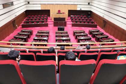 午後1時から「八王子市役所」の見学です。職員の方に、議場や廊下からの見学の案内をしていただきました。質問にも丁寧に答えていただき、ありがとうございました。