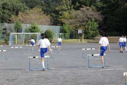 男子(バスケットボールの授業を終えて)女子(ハードル走)