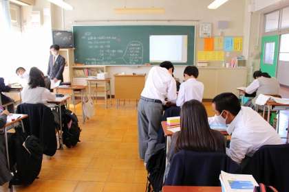 方程式の利用(ひとりひとりの解答を確認しています、教え合いの場面です)