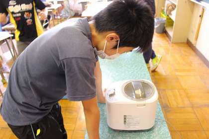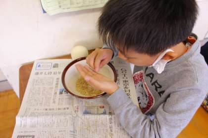 米を収穫しよう(精米機も使用)
