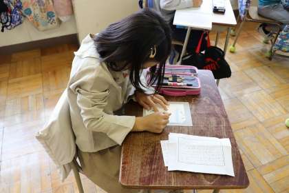 はがきを書いています。