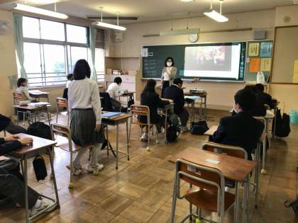 歌を聴きながら、指定の単語が出てきたら立つゲームをしています。