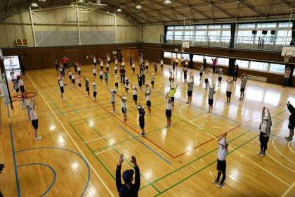 校長先生のお話、得点についてと続きます。準備運動をして・・