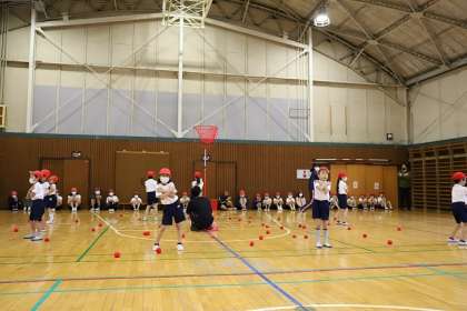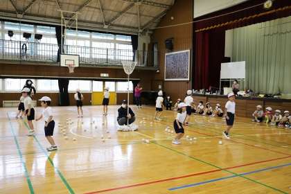 最初の種目は「玉入れ」です。ダンスをした後に・・