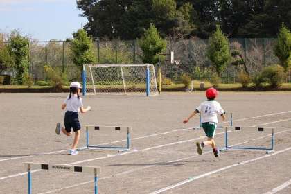 「ハードル走」自分にあった感覚でリズムよく走っています。