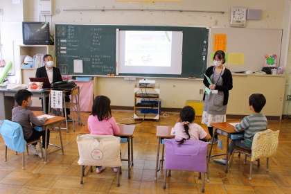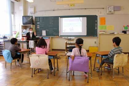 学校医の小泉先生には、4年生に引き続き1年生にもお話をしていただきました。ありがとうございました。最後に家での染め出しのワークシートを配り、やり方を説明しました。