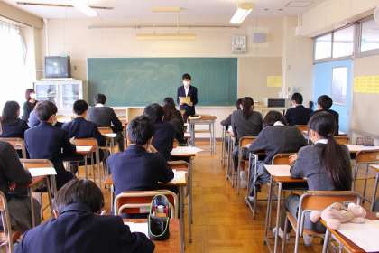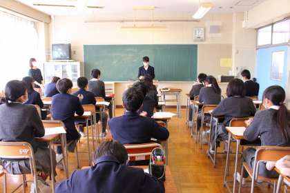 上級学校調べ発表会です。パソコン室での調べ学習で得た情報をもとに分かりやすく発表していました。