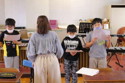 合唱『せかいがひとつになるまで』しだいに声が出てきました。