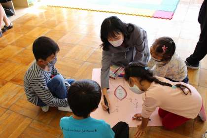 さつまいもをテーマにした「イメージマップ」を書いています。本を開いて調べ始めました。