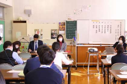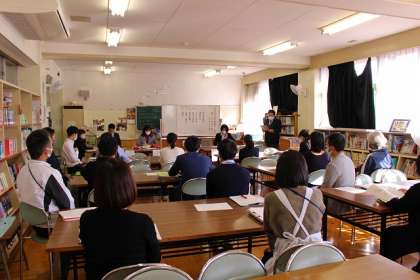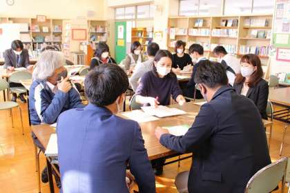4階図書室で行いました。分科会ごとに集まって授業観察の視点等について協議しました。