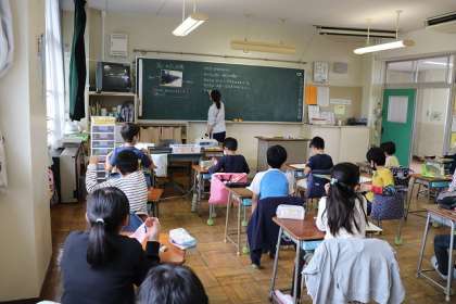 「かげと太陽」日なたと日かげの地面のようすは,どんなところが違うのかを学習しました。