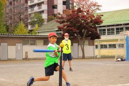 『ボール運動 (ベースボール型)』ティーボール、よく飛んでいます。