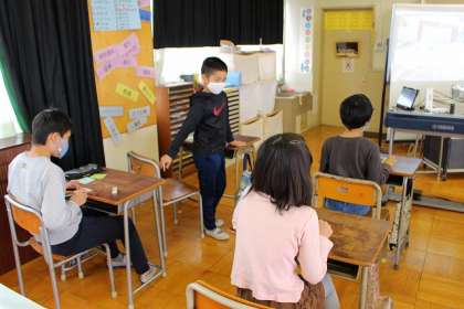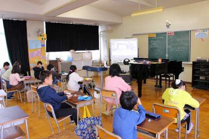 音楽発表会で聞かせてもらった5・6年生へ手紙を書いています。